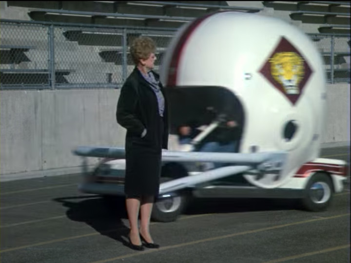 This was a very silly episode. Murder, She Wrote rarely gets anything right when it comes to settings like business or sports but it at least often limits itself to superficially plausible errors that you need to know something about the subject to realize are wrong. Here it gets a ton wrong about football and I barely know anything at all about football! It’s especially a problem that the things it gets wrong are so dissonant. The Leopards are a failing team, but there’s a lot of money involved.