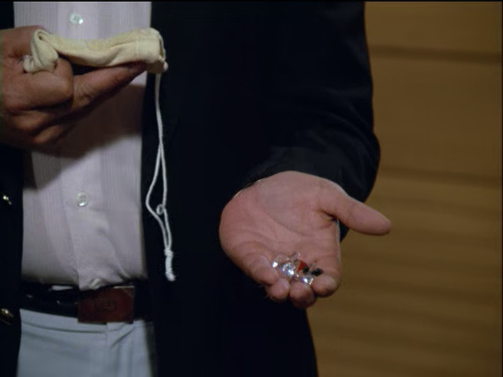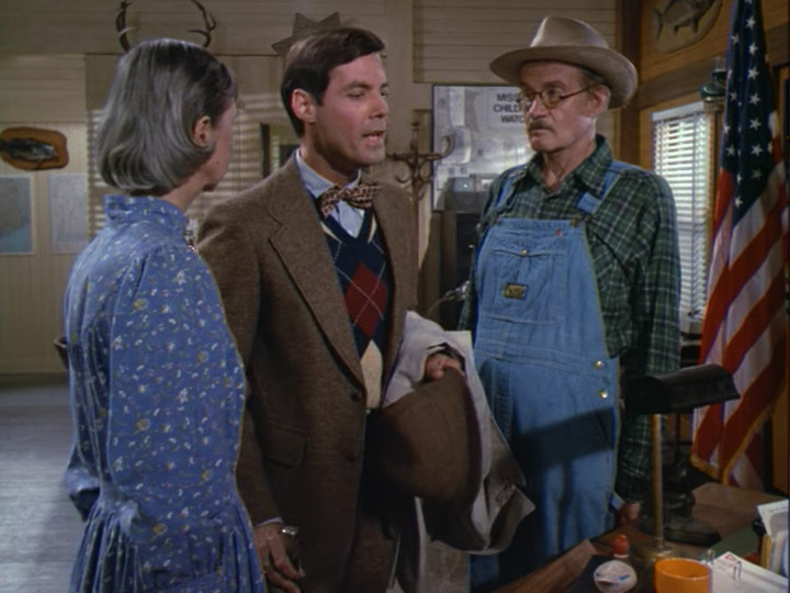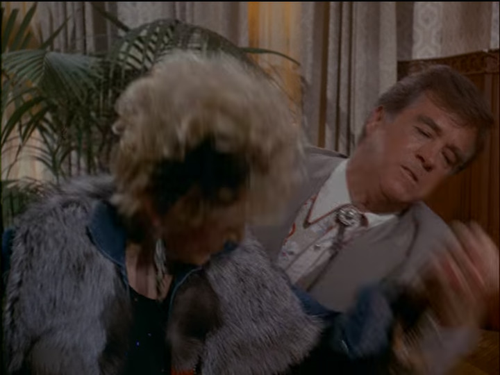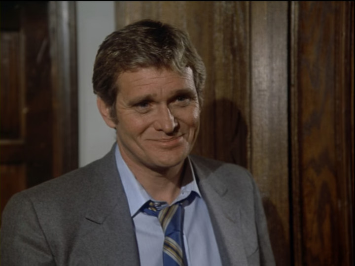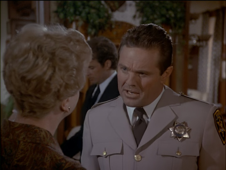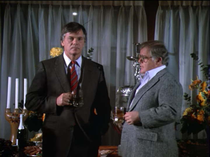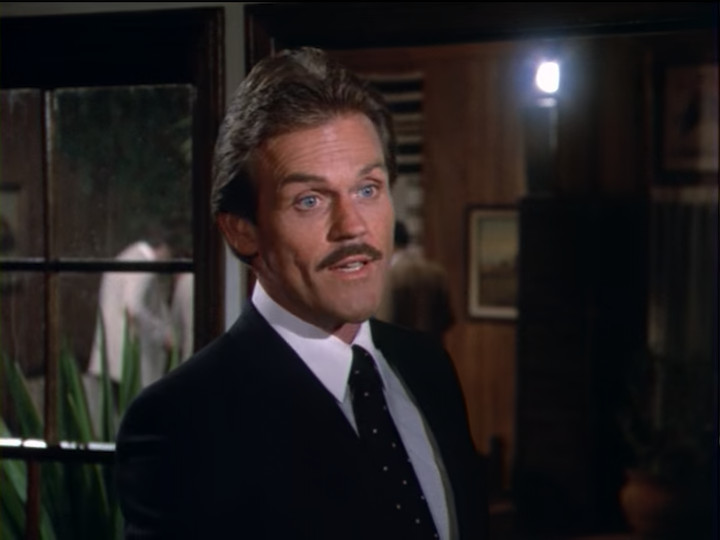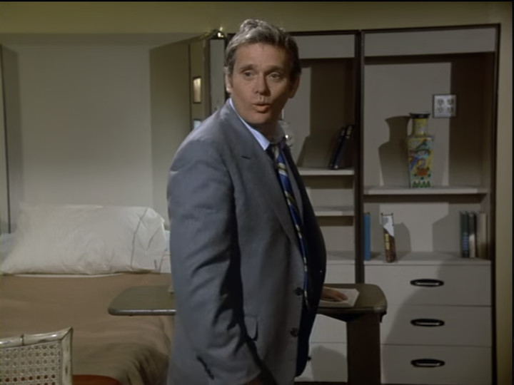 Harry Pierce is played by John Astin, by the way, who is best known for playing Gomez Adams on the TV show The Addams Family. (The Addams Family ran from 1964-1966, so by the time of this episode it had been almost twenty years since Astin had played the character.)
