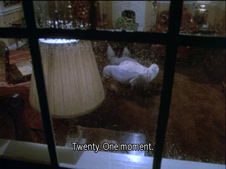 The murder also hinges on an extremely improbable event: Zak barging in to the party demanding to talk to Kreuger now, this very moment, then happily accepting an appointment for forty five minutes later and hanging around at the party for half an hour. This may be why they emphasize this so little that I originally thought that Zak immediately left for Kreuger’s house and concluded that there wasn’t time for anyone to kill Kreuger first. (I only realized that Zak hung around at the party for half an hour when I was re-watching the scene to see if I could spot where Web changed his clothes.)