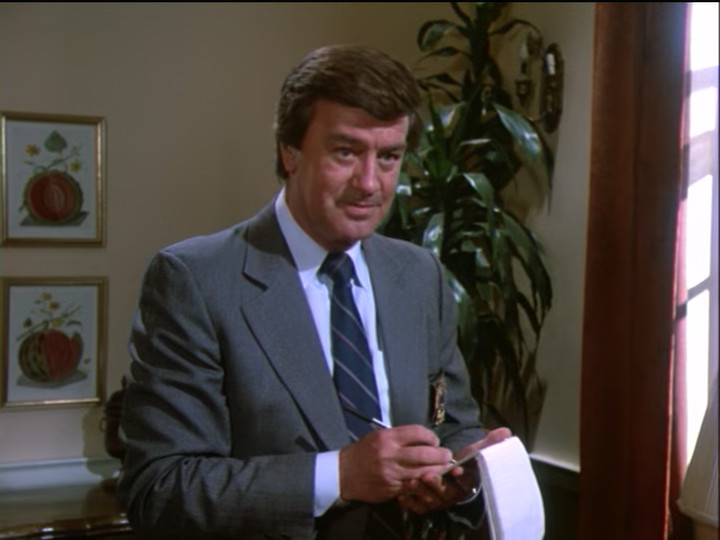 Lt. Clyde Pace is a bit of an odd homicide detective, as Murder, She Wrote goes. He’s tough, but very willing to work with Jessica and also quite into sports gambling. We actually meet him on the phone, talking to his bookie, and saying to give him $500 against the Leopards winning the upcoming game on Sunday.