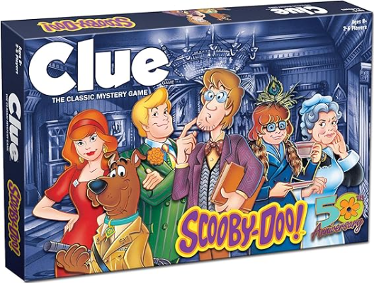 And that does point, too, to the answer to what got me looking into this in the first place: the game changed its art and style fairly often throughout its history. There were, in the last few decades, a rash of various brands trying to distance themselves from their history and from the past, but Clue was not, so far as I can tell, meaningfully caught up in that. It started with an aesthetic that was, at the time it was developed, relatively modern (except for the Sherlock-Holmes-alike, but that was a specific character rather than meant to be referencing a time period) and it changed throughout its history in ways that were contemporary. It also had a variety of tie-in versions, perhaps the most obvious being the Scooby-Doo version (still for sale on Amazon as of the time of this writing):