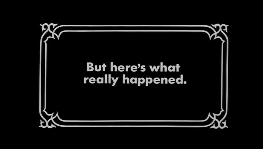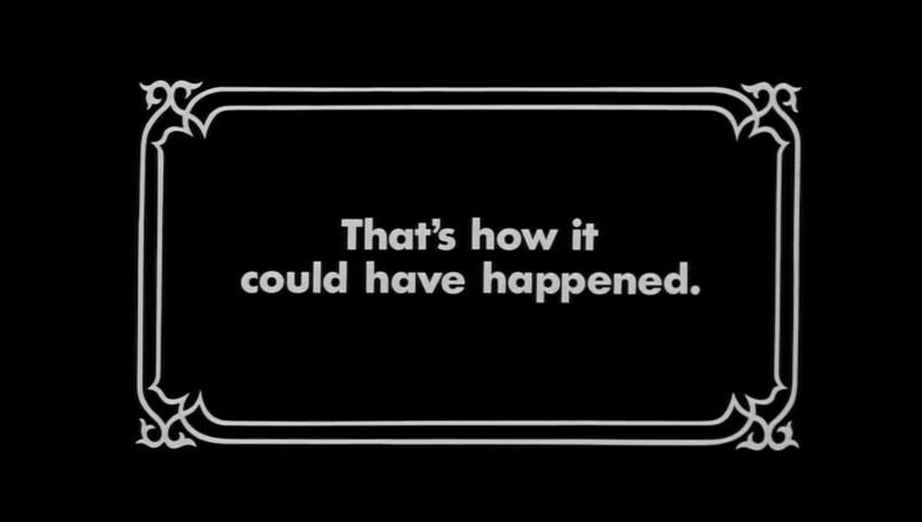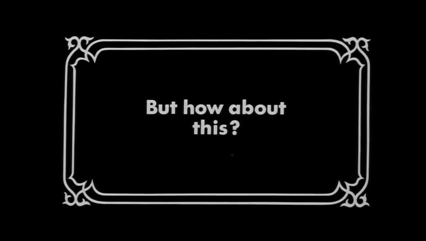 The movie is rather interesting for another reason, though: it has a nod towards the replayability of the board game. Instead of having a single ending, it actually has three endings. As a gimmick during release, each movie theater was sent one of the endings at random. Fortunately for the recorded version, it was released on VHS long before DVDs were a thing and so they had to figure out something to do for the VHS version. What they came up with was to present one ending, then put in a silent-movie style text cards saying: