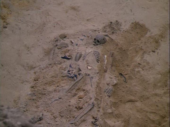 When Seth presents Jessica with a seven-layer cake that they’re going to have for desert, Jessica then gets the inspiration to dig underneath where the skeleton was found for other artifacts. How no one else came up with this idea, I can’t imagine. But it doesn’t much matter, because the actual reason that Jessica and Amos go to the site of the body is to find the murder that this episode is really about: