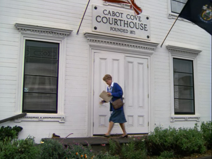 When we come back, we see Jessica coming out of the Cabot Cove courthouse for some reason.
