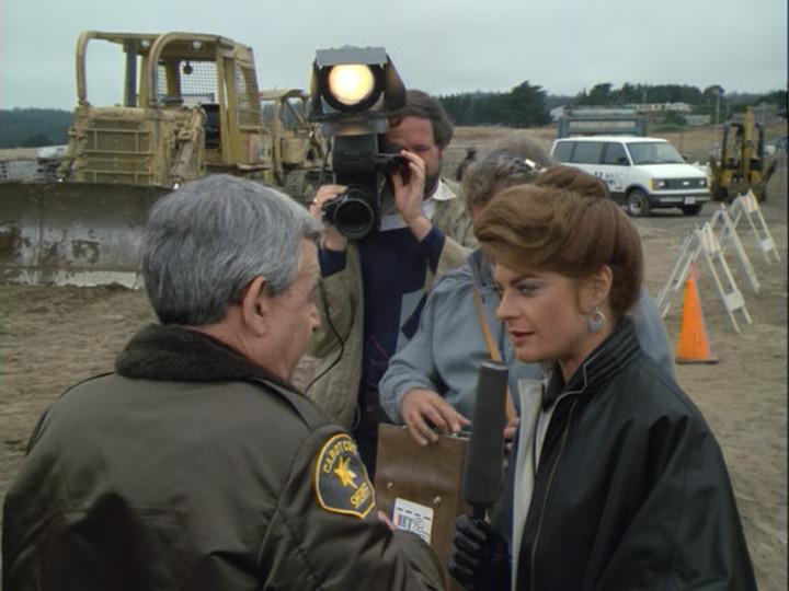 As they walk, Del tells Jessica about how she’s hated Wheatley for his sub-standard construction ever since she was covering the weather in Pittsburgh (that seems like the kind of detail that often comes up later—especially because as someone covering the weather in Pittsburgh she’d only have reason to hate Wheatley if a relative was killed in one of his buildings or something like that). Jessica suggests Del talk to someone like David Marsh, who would be far more eloquent on the subject than Jessica. She already tried, though, and Marsh declined. He even requested that they not film him at the construction site, though his request was too late. (This suggests that Marsh doesn’t want to be seen on national TV, perhaps because he’s a wanted fugitive who’s living under a false identity. Alternatively, that he’s someone in the witness protection program.)