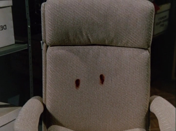 The Bottom Line is Murder is, overall, a strange episode. It is very memorable, but not really for the mystery, which was not all that well crafted. Don’t get me wrong, it holds together well enough, minus it being a bit strange that the janitor didn’t hear the gunshots and the direction the chair was facing in no way being an indication of the direction it was facing when the victim died. The coffee stain indicating the switched chair was solid enough, though it was extremely contrived that the chair had a coffee stain. Likewise the broken TV causing the victim to be in the wrong place was fine, if the significance of the broken TV was a bit telegraphed. (Also fairly coincidental. It isn’t very plausible that Chambers would have had hours of footage to watch, so the odds of catching him in Steve’s office, sitting down and watching, would not have been very high. Granted, it’s fine for coincidence to be involved in the murder itself, but only up to a point.)