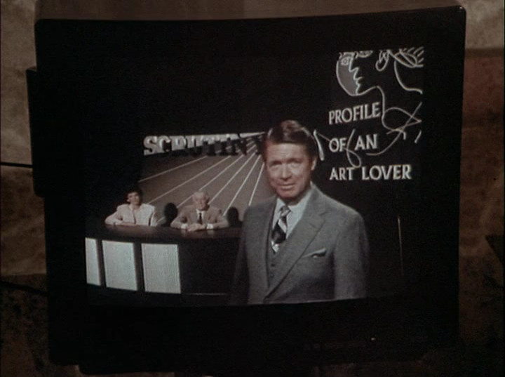 He is conducting what is ostensibly an interview about art with Ronald Ross, who has one of the finest private collections of abstract expressionism in the country. This lasts for a few seconds, then Keats starts accusing him of being a drug dealer. Ross says that he’s very disappointed, because he loves to show off his art collection. He walks off, and his enforcer, Gerald Foster, a big bald man, signals that the interview is over by blocking the camera.