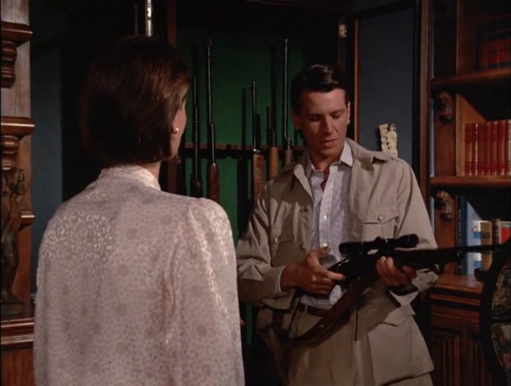 I wonder if, in the whole history of Murder, She Wrote, the murderer has ever shouted a death threat at the victim? Certainly, I can remember no instance of it. Granted, we’re only three seasons in at this point so it’s harder for the audience to be sure that Mr. Ross’s threat entirely exonerates him of the murder soon to take place, but even at this point in the series it’s a good bet.