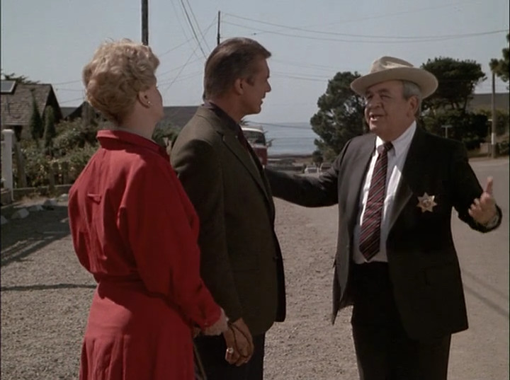 This being left completely unresolved, we move to Cabot Cove, where the residents are getting ready for their closeup. Interestingly, this episode, despite being in Cabot Cove, does not feature Seth Hazlet. Filling in for him while he’s visiting his sister is Wylie.