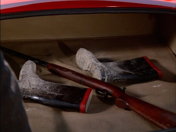 Then it turns out that the car is actually registered to the Viscountess’ sister-in-law, who invites the inspector to open the boot (what we Americans call the trunk). In it we find…