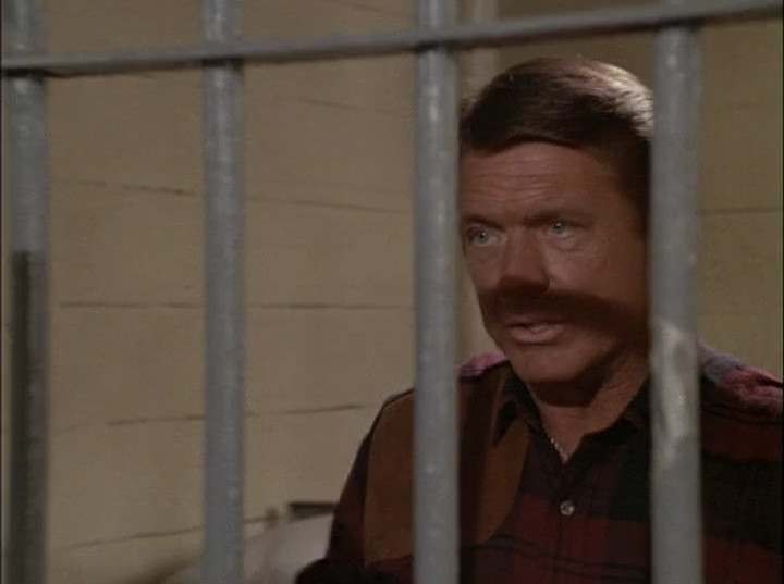 However improbable, though, this dramatic appearance moves the plot along. Amos shows up in the middle of Kevin Keats interviewing Jessica and tells her all about the big ugly bald guy, which makes Keats request the Sheriff (in private) to quietly hire a boat for him.