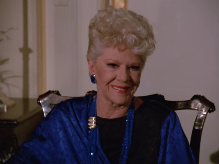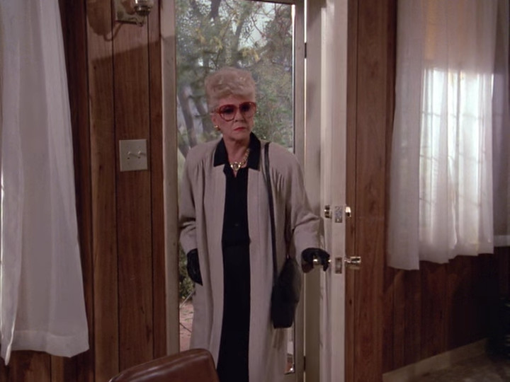 Oddly, for Murder, She Wrote, they didn’t disguise the figure very well, and in fact in the very next scene they show us that it’s Judith, wearing sunglasses and gloves but also distinctive jewelry and with her unusual hair on full display.