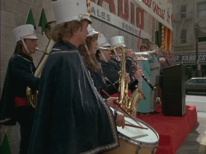 It’s being held on an empty lot to commemorate how there will be a new Corned Beef Castle on this site a year from now. They unfurl a banner proclaiming this (with less specificity) while the band plays slightly medieval music.