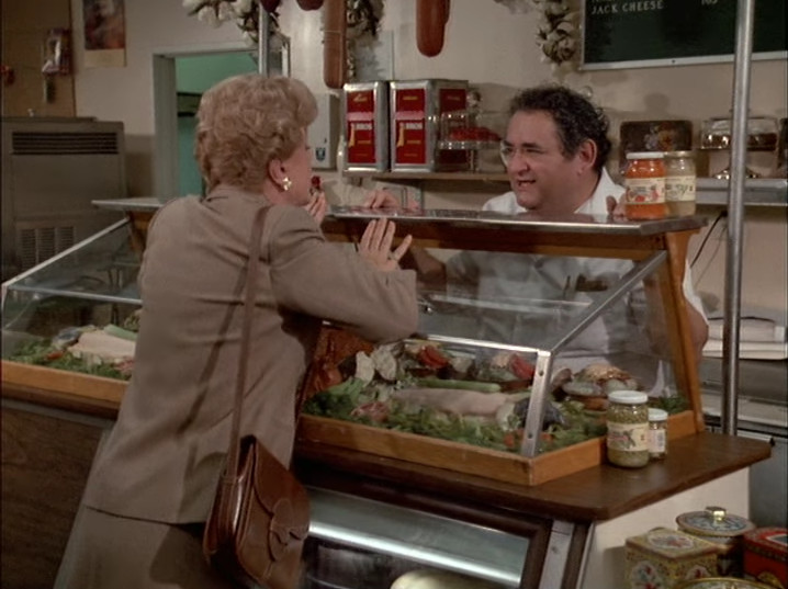 In the next scene we see what Jessica is up to; she’s doing the police legwork of chasing down where the sandwich came from. I’ve been accused of having the police not do obvious stuff in my first murder mystery (The Dean Died Over Winter Break) but that made sense as it was a college town police department that’s used to dealing with theft and drunk and disorderly conduct. This episode is set in New York City during the 1980s—homicide was a daily affair. Be that as it may, Jessica finally finds the delicatessen the sandwich came from on her seventh try.