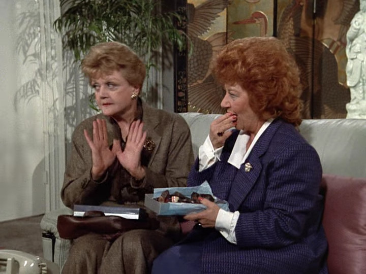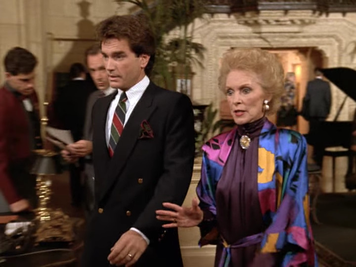 I know that in my own mysteries I have all too easy a time forgetting to include the pleasures of a setting that the reader might have a fun time vacationing in, so I always like to notice this when it’s a feature of a Murder, She Wrote episode. A super-fancy hotel is this in spades. The cavernous rooms are actually fun, rather than head-scratching, as they often are when they’re business offices.