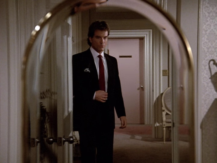 In the next scene, Grady is moping while watching the TV and Jessica tells him come with her to dinner. They’ve got a reservation in forty five minutes, and the exercise will do them good. Jessica tells Grady that he’s not allowed to bring his long face, however, and he tells her that she’s his favorite person in the world. As they’re leaving they run into the maid who came to do turn-down service.