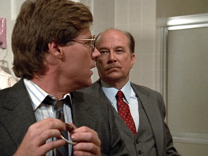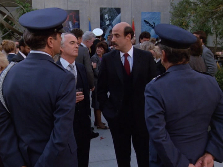 The guy with the mustache and the red tie is Russell Armstrong (fun fact: he’s played by Jeffrey Tambor, who played George Bluth Sr. in Arrested Development). The man with white hair and the grey necktie is Dr. Thor Lundquist. (Interestingly, it comes up that Dr. Lundquist has a popular television program where he presents astronomy to the public. That’s only characterization, though, it’s not relevant to the plot.)