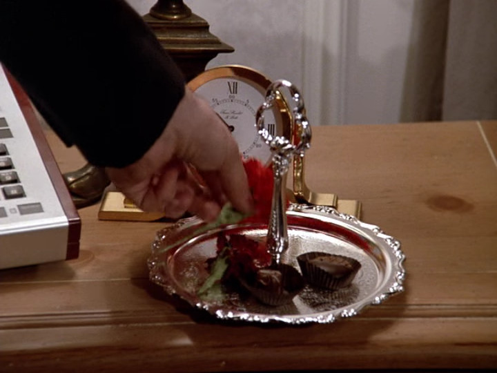 This, presumably, tells us that Fay was worried it might have been Leonard, and also establishes that she knew the phone number at the house. (Technically she might have just looked it up in a phone book or in the company phone directory, but people don’t usually call each other on Murder, She Wrote in front of Jessica unless the phone number is unlisted. (For those below a certain age, there used to be books printed on cheap paper and distributed to everyone that listed people’s phone numbers. These books were called “phone books” and for a fee one could have one’s phone number not included in the book.))