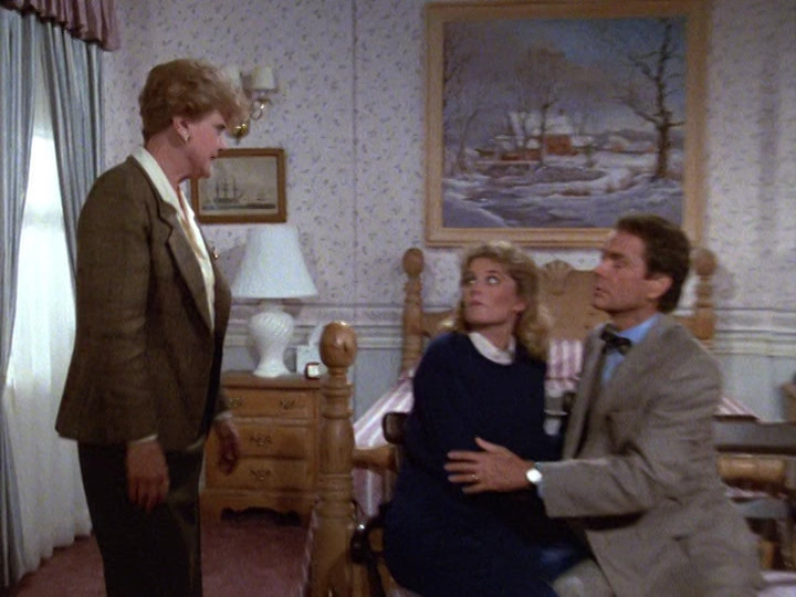 I also really like the timing of this episode. A typical Murder, She Wrote episode often has the murder happening twenty or even twenty five minutes into the episode. The setup is nice and efficient, with the full introduction of characters taking place as much after the murder as before. That tends to be a much better construction, as much of the point of a murder mystery is that the investigation of the murder creates a liminal space in which people can say and do things that would not normally be permitted on either side of that threshold.