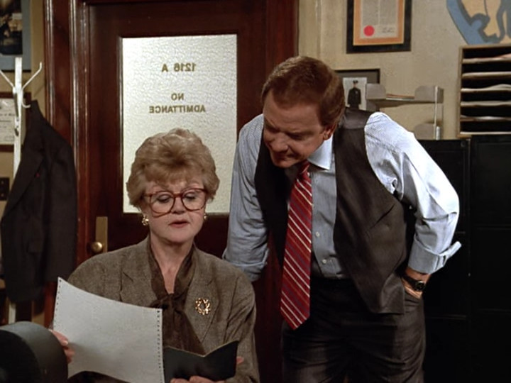 Grady then apologizes for earlier, when he was rude and wouldn’t listen to Jessica about going to the police. Jessica kindly replies, “Look, Grady, the day that you and I can’t have a good old-fashioned argument, I’m gonna start wondering where I went wrong.” This is a nice bit of characterization and, for a change, is actually appropriate to a retired school teacher from a little town in Maine. Unlike in big cities, where moving on is always easy, in small towns the ability to reconcile is an important skill.