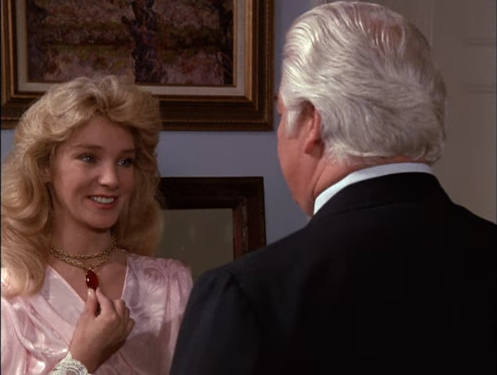 I get that Murder, She Wrote needs to be time-efficient in its characterizations, but this level of casual antagonism is dysfunctional. I suppose it’s meant to help make him a suspect—Carolyn suggests that if their father and her young wife have a son together, Alice will ensure that her own issue takes over the bank when their father dies, not Mark.
