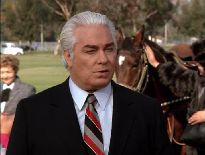 In the actual circumstance, this is absurd. Richard Bradford, the actor who plays Richard Hazlitt, was born in 1934 and was thus 54 years old in 1988 when this episode aired. I suspect he was playing older, though, since his children are clearly in their thirties and Richard Hazlitt was unlikely to have fathered them in his early twenties. But heck, let’s suppose the character was supposed to be the same as as the actor—and it’s weird for a thirty year old to talk of a fifty year old as being “old”—this means that in twenty years he’ll be 74. Even if he survived this long, he’ll probably retire, and the oldest his son with his new wife could be is nineteen years old. Are we really to expect a bank to be run by a nineteen year old with no experience in preference to a fifty year old who’s worked in the bank for the last thirty years? Primogeniture will pass a title and estate to a child. American corporations don’t work that way.