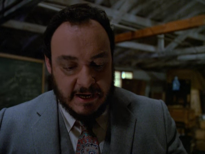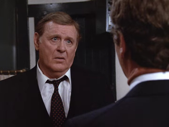 Perhaps oddly, I actually find the motive in this episode to be on the more believable side. Superficially, of course, it’s ridiculous. Who could want to kill a person because they wrote a scathing review of his play twenty years before? And yet, Elliot Easterbrook comes off as a man consumed by hatred. Especially as Dean Stockwell plays him, he is an Ahab character. He cares for nobody and nothing because he’s obsessed with his white whale. Indeed, the part about him dating the young woman who played the witch didn’t add anything to the plot but it did add some very interesting characterization of Elliot—he spent four hours talking about himself. A man who can spend four hours with a beautiful woman talking about himself is the sort of man who can resent a scathing review of his play to the point of murder, and hang onto this resentment for decades. Also, the time frame works well. A man like Elliot wouldn’t go for murder immediately. He would brood for a long time before going there. Having spent decades wrapped up in his hatred, trying and failing to destroy Danny O’Mara through lesser means—that might might work him up to the point of murder. Especially considering how, in his early fifties, he might be starting to reflect on how his quest for revenge deprived him of a wife and children. He would blame O’Mara for that, too. Most people would not react this way, but this sort of hatred is the kind of mistake a human being can make. There’s no such thing as a good reason to make a bad decision, so motives for murder cannot be evaluated on the basis of whether there was a good reason to commit the murder. They can only be evaluated on the basis of there being a human reason to commit the murder. Offended pride, nursed for a long time—that is a human reason.