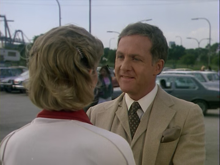 Looking at the ship, she tells him, with a smile, that she’s almost glad that the talked her into this. Breaking stereotypes, she goes off to make one final call to the office before the trip to make sure that there are no emergencies. (In the 1980s, the character trait of being a work-addict who has to constantly check in at the office and can’t enjoy himself because Business is all he can think about was usually given to the husband.)