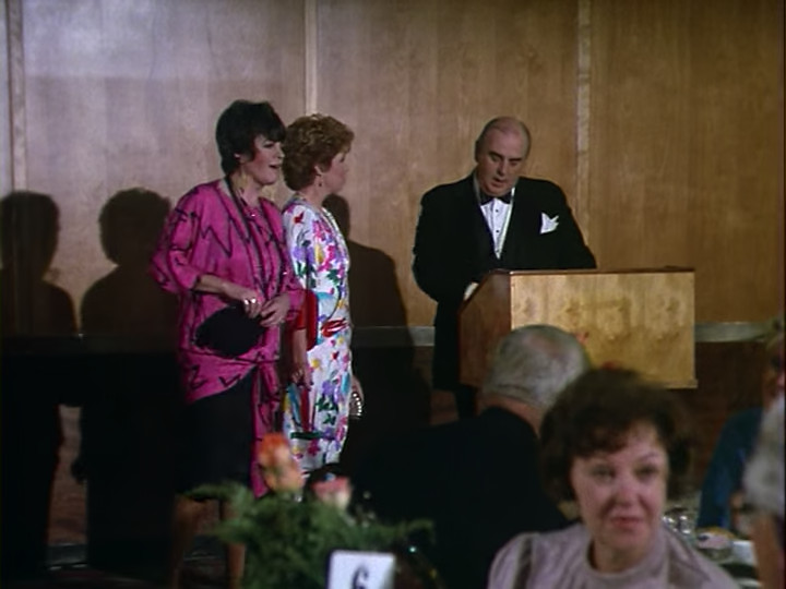 Speaking of the Captain, he was an interesting character. I can’t really convey it in my description of the episode but Leslie Nielsen has tremendous charisma which he brought to the role of the Captain. So much so that it’s hard to separate out the character as written from Leslie’s portrayal of him. As the primary authority figure with which Jessica interacted, he was somewhere in between the typical two extremes of asking Jessica to investigate and asking her to keep her nose all the way out of the investigation. I can’t help but think that apart from Leslie’s charisma he wouldn’t have been very interesting. There’s a lesson, there, I think, about improving merely functional characters with interesting characterization. I think that can be overdone, though. For example, Ramone, the Italian stereotype was certainly given traits beyond what were necessary for his very minor function of delivering champagne and searching for the suspects, but it was mostly just annoying. I think that the important thing is that the characterization must be related to their function in the story. The Captain was concerned both with the individual passenger (Pam) as well as with his hundreds of other passengers, as well as his responsibility to the cruise liner. Ramone being an Italian stereotype was as relevant as having a dancing bear on stage.