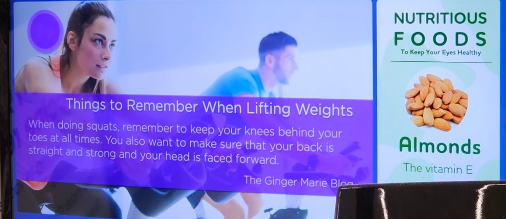 That’s not really why I bring this up, though. A pharmacy is a very strange place to get strength training advice in a corner overlayed on top of a picture of people on exercise bikes. To give a sense of how odd this is, imaging walking into a powerlifting gym and behind one of the machines is a TV which shows a picture of technicians putting someone into an MRI machine and the text on top says: