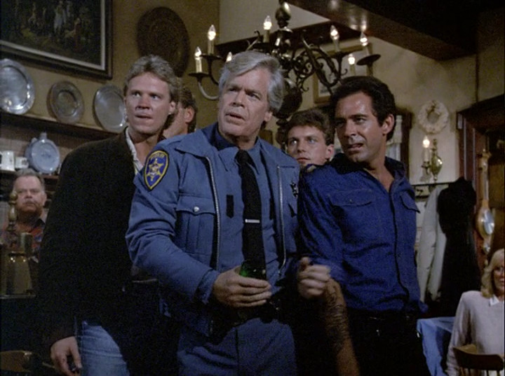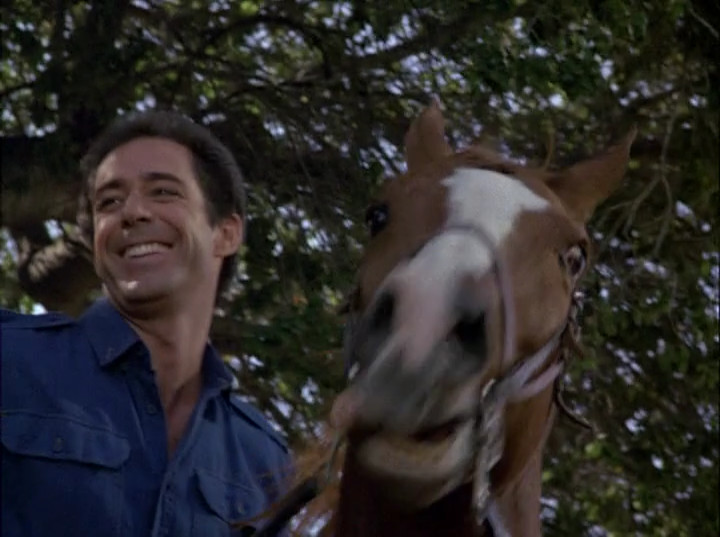 Nate Finley happens to be around and threatens the stablemaster that he will find a new stablemaster if the current one cannot keep control of the horses. It’s a noble effort on the part of the writers to distract from the characters just introduced by highlighting what a bad guy Nate Finley is, but one of the problems that Murder, She Wrote writers labor under is that they don’t have the budget for unimportant characters. That said, they do at least have the freedom to make characters important for surprising reasons, so we don’t really know what part the boys play in this.