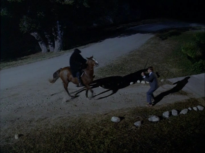 And then, to pay off the title, out of nowhere a headless horseman carrying a jack-o-lantern rides up.